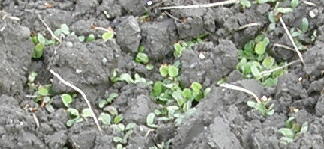 昨年は、種を播くのが遅かったためほとんど出なかったのですが、今年は、緑色の元気な芽です。