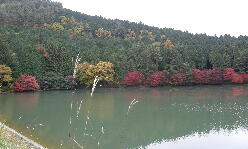 櫛形山の中腹にある伊奈ヶ湖は、紅葉の真っ最中です。