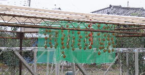 ※ 緑色のものは、干し柿を鳥から守るための網 |