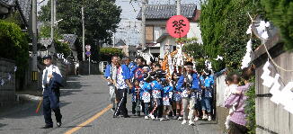 天神社、秋の例大祭に子供神輿が村中を廻ります。