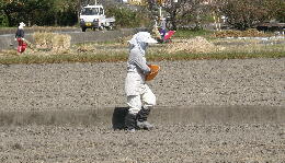 予報では明日、天気が崩れるので、早速レンゲの種を蒔きました。