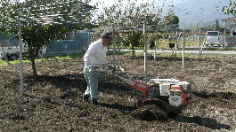 畑に撒いた有機肥料を管理機で土とかき混ぜます。