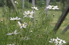 畑の脇には、秋を告げるようにコスモスが花開いています。 |
