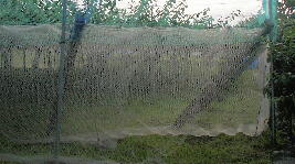 椋鳥につつかれないうちにと、まわりの網をおろし、鳥が入れないようにしました。 |