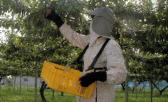 シンクイ虫、アブラムシの消毒の後、今日もサクランボの収穫を手伝いに行きました。