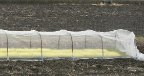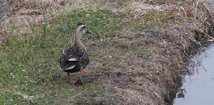 苗を荒らされないよう丈夫な網で防御しているので、鴨は畦道から眺めています。 |