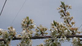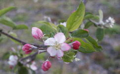 王林は、中央で咲いている花以外の蕾を摘んで花粉を採り、富士に授粉します。