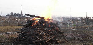 風が吹く前に、剪定の太枝を焼却しました。