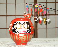 今年も良いものが収穫できるよう、だるまとえんぎを買ってきました。 |