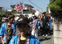 天神社の秋祭りで、子供御輿が村中を練り歩きます。