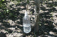 ヘチマの茎を切り、朝8時頃から夜7時頃までペットボトル2本約2リットル採取しました。