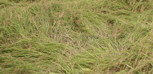 昨日からの雨で、前から倒れていた稲がさらに倒れてしまいました。