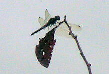 草刈の時、スモモの枝先にトンボが止まっていました。