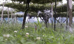 雑草押さえに畑の周りに播いたシロツメクサの花も咲いています。 |
