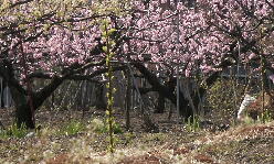 すももの花の後をうけ、桃の花が鮮やかなピンク色に咲き誇っています。 |