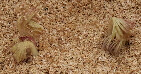ウドの芽が籾殻の上まで伸びてきました。