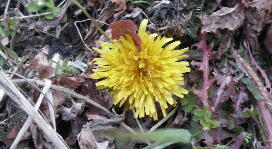 こんなに寒いのに畑の隅ではタンポポが花を咲かせています。