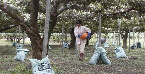 来年も美味しいスモモが獲れるように、サンライム(動物性石灰)と有機肥料を散布します。