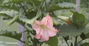 エンジェルストランペットの花が前から咲いていたのですが、ようやく横向きの写真を撮ることが出来ました。