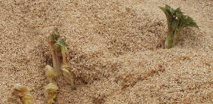 ウドが籾殻の中から頭を出しました。