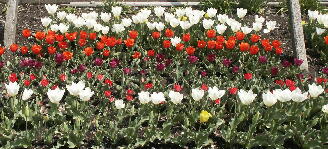 自宅前の畑では、白いチューリップが開き、赤も蕾が膨らんできました。今年は暖かかったので丈が伸びていないです。五色、一斉に開けばと思うのですが、なかなかうまくいきません。 |