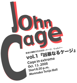 vol.1 『凶暴なるケージ』 終了しました。ご来場ありがとうございました。 ケージの音楽には常に過激な挑発性が潜んでいますが、1950年代半ばから1970年代初頭にかけては、彼自身の演奏においても顕著だったように、その挑発性は音楽の表面に明確に現れます。その中から特徴的ないくつかの作品を、既存の美しさや演劇性によりかかることなく、リアライズします。 |