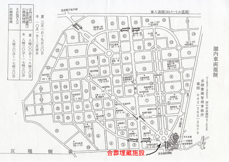AJR中央線・武蔵小金井駅または京王線・多磨霊園駅からの路線バス有り