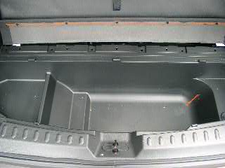 リアのアンダーボックスを外します。前側はクリップで止まっているだけ。 |