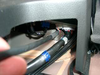 アンダーボックスを外して左リアタイヤハウスの辺りを覗くと、TVチューナーが見えます。その空いているコネクタにケーブルを挿します。 |