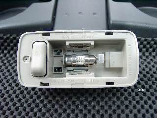 ついでに2列目のランプの外し方。プラスチックのカバーではなく、ユニットごと外します。 |