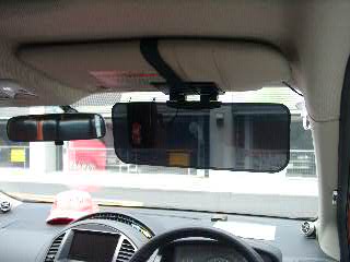 ハーフスモークのサンバイザーを取り付けました。写真のように、先は見えるので、信号待ちのときとか便利です。 |